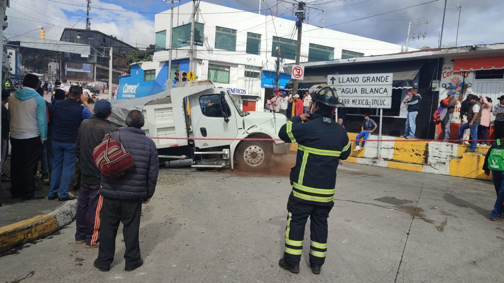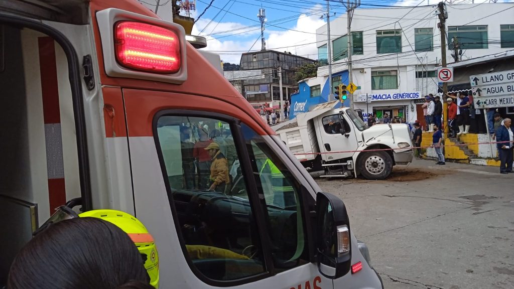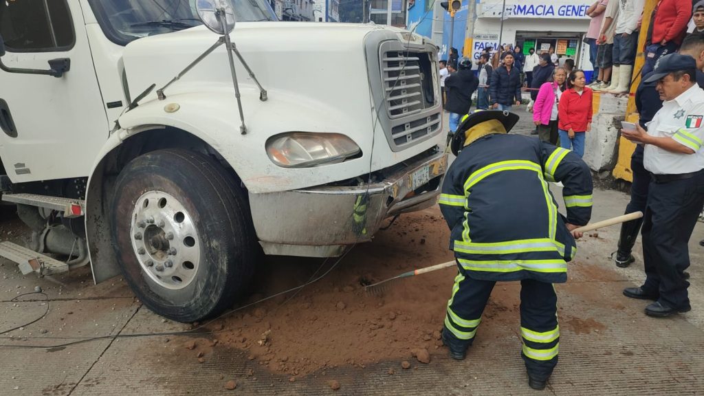 1. Cerca de las 9:00 horas, un tractocamión que circulaba por la avenida 16 de septiembre y que transportaba material de construcción, se quedó sin frenos e impactó a una unidad del transporte público de la Ruta 15 y a otros tres vehículos más que se encontraban en el cruce de la calle López Rayón.