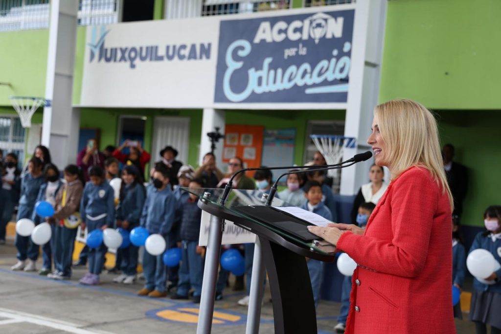Al develar la placa de los trabajos que se realizaron en esta institución, la número 85 que se rehabilita en Huixquilucan, la presidenta municipal, Romina Contreras Carrasco, aseguró que su administración le apuesta a la educación, ya que es una herramienta que, en el futuro, le abrirá muchas puertas a las y los niños y jóvenes huixquiluquenses.