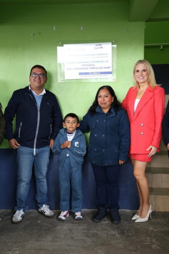 • La presidenta municipal, Romina Contreras, entregó la Primaria “Fray Servando Teresa de Mier”, en El Hielo, como parte de su compromiso de rehabilitar el cien por ciento de las escuelas del municipio con este programa