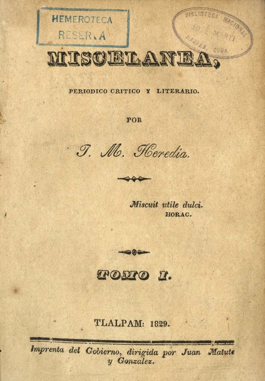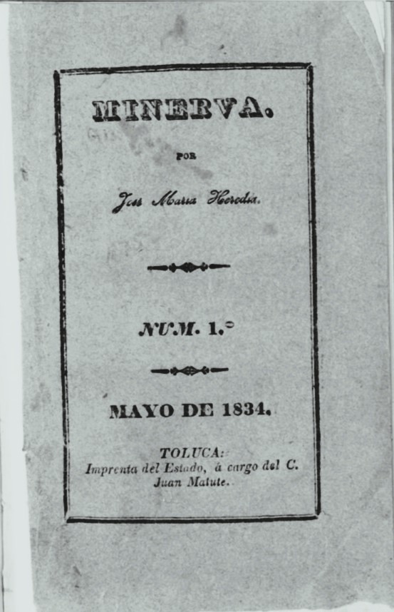 La académica destacó cuatro publicaciones editadas por Heredia en el Estado de México: el primero fue el periódico cultural “Miscelánea”, que vio la luz en Tlalpan en los años 1829 y 1830 y, posteriormente, se editó en Toluca durante los años 1831 y 1832; el segundo fue el periódico con perfil político “El Conservador” en 1831; el tercero fue nombrado “Fanal”, fundado en 1832, definido por él como de política, literatura y comercio; finalmente, el cuarto periódico llevó por nombre “Minerva”, el cual se especializó completamente en el tema cultural.