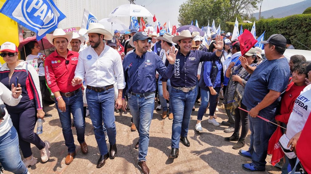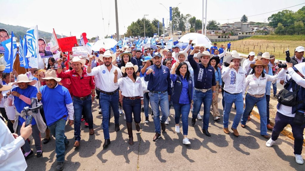 Antes, Enrique Vargas y el presidente nacional del PAN, Marko Cortés acompañaron a la candidata a presidenta municipal de Chapa de Mota, Lety Zepeda; al abanderado a diputado federal Arturo Chávez y a la aspirante a la diputación local, Mariela Pérez, a una caminata por las calles de la localidad en donde la gente salió a apoyar a los candidatos aliancistas.