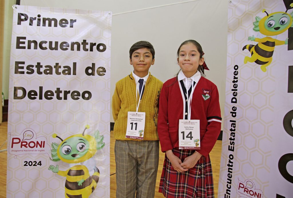 Sofía Pérez Bañuelos, de la Escuela Primaria “Joaquín Arcadio Pagaza”, de Valle de Bravo, y Neymar Emmanuel Legorreta Díaz, de la Escuela Primaria “Gral. José Vicente Villada”, de Toluca, representarán al Estado de México en el Primer Encuentro Nacional de Deletreo PRONI 2024 en la Ciudad de México el 26 de junio próximo.