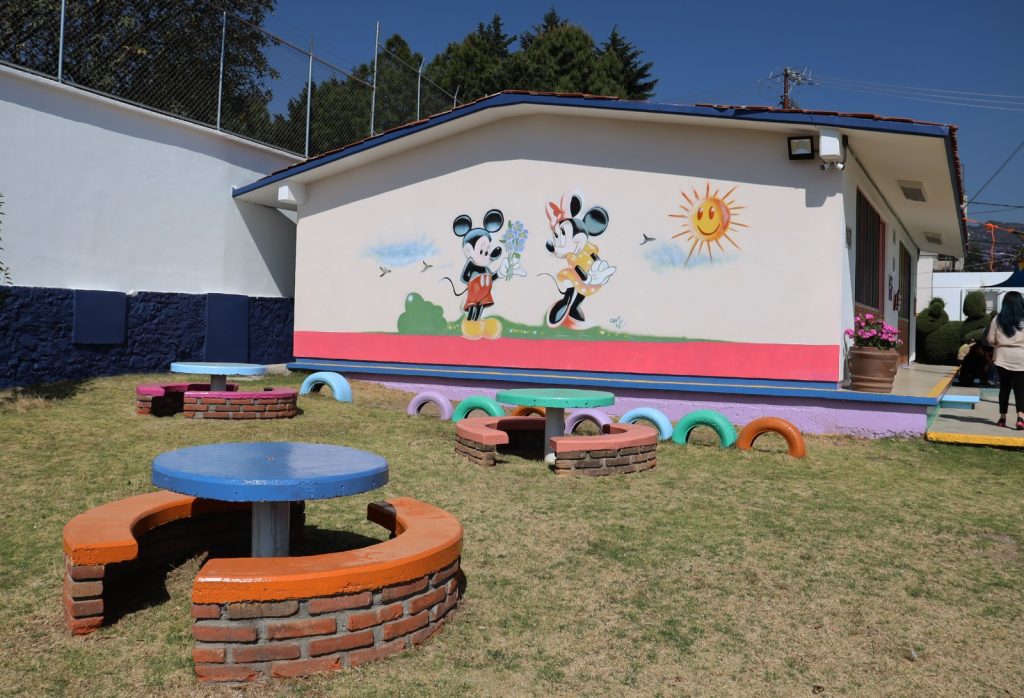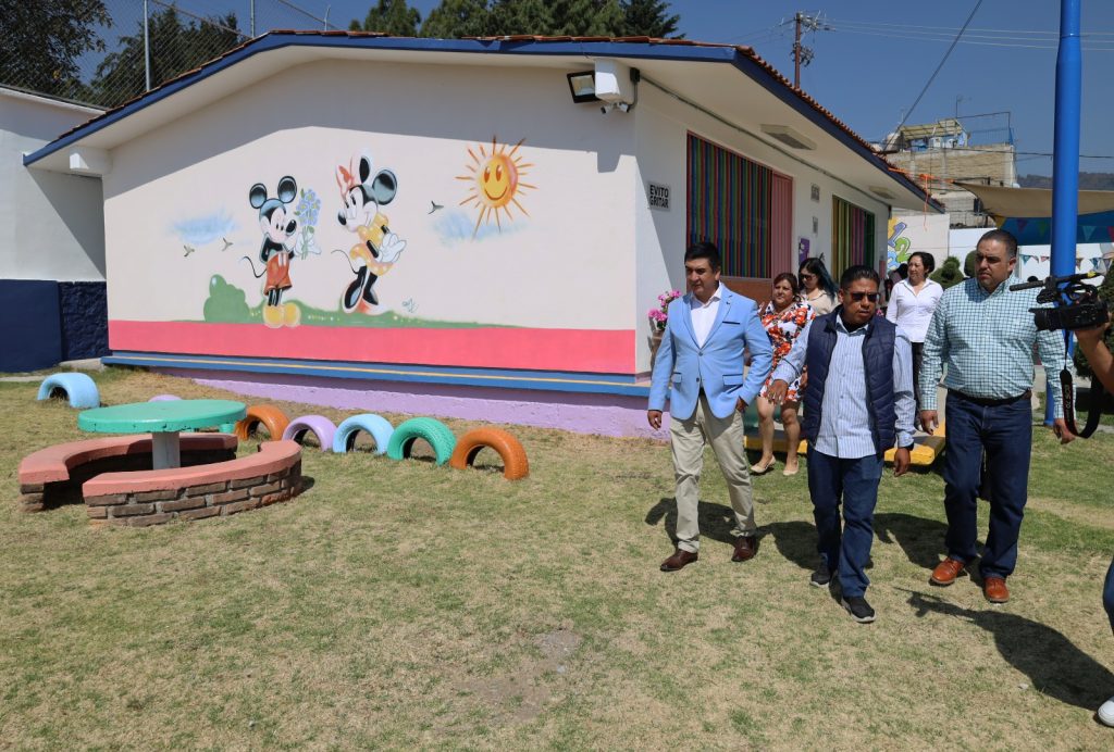 El Gobierno de Huixquilucan rehabilitó el Jardín de Niños “Arquímides”, donde realizó trabajos como trazo de juegos didácticos, mantenimiento en pintura y remodelación de sanitarios e instalaciones eléctricas