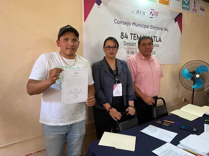 Con júbilo y agradecimiento, Pepe Gómez, candidato respaldado por el #PartidoVerde, ha sido oficialmente reconocido como Presidente Municipal electo para el periodo 2025-2027 en Temamatla. En una ceremonia llena de emotividad, Pepe Gómez recibió la constancia de mayoría, así como la Síndico, Regidores Propietarios y Regidores Suplentes que conformarán el equipo de trabajo para la administración venidera.
