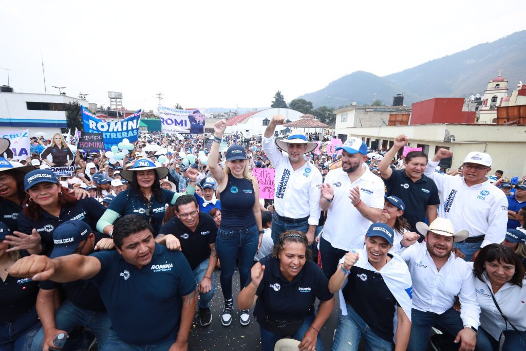 “En Huixquilucan, vamos a arrasar; y yo me comprometo, desde la Cámara de Diputados, a estar siempre al lado de ustedes, de sus familias y hacer equipo con Romina Contreras, por eso en Huixquilucan vamos por ese 5 de 5, hasta la victoria”, indicó.