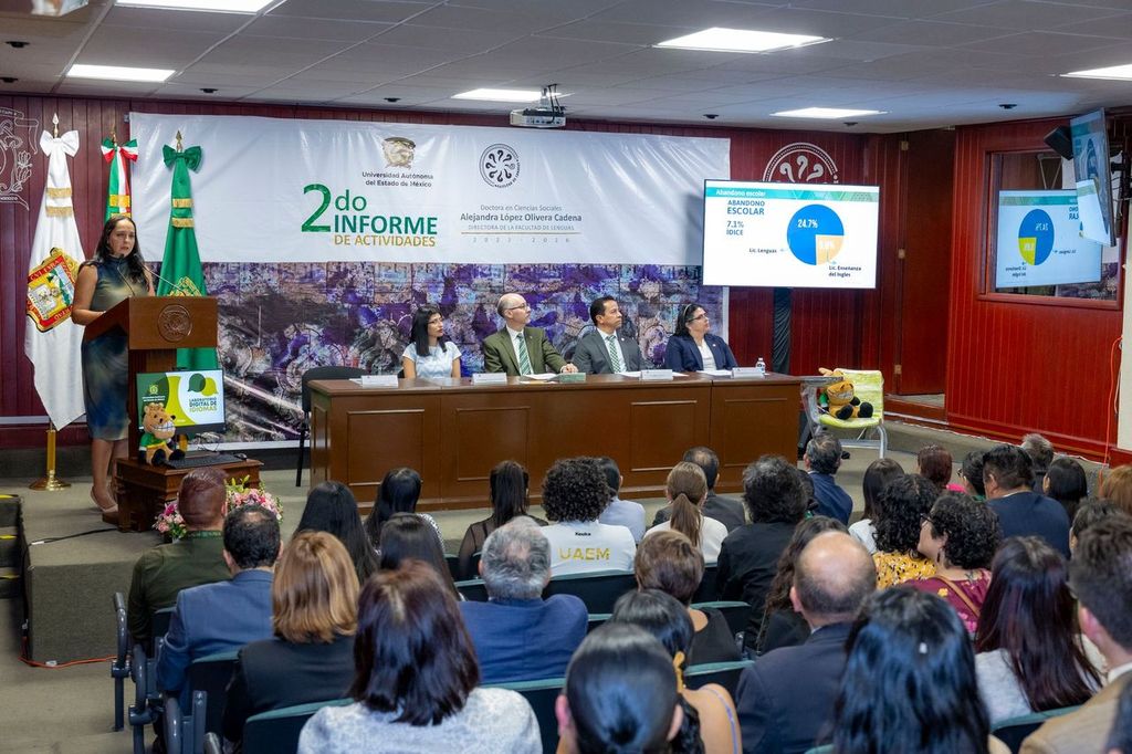 Este espacio académico es de suma importancia para nuestra casa verde y oro, pues sus programas educativos y el extenso trabajo de investigación resultan trascendentes en un mundo cada vez más globalizado en el que la comunicación intercultural resulta necesaria, resaltó el rector de la Universidad Autónoma del Estado de México (UAEMéx), Carlos Eduardo Barrera Díaz, durante la lectura del Segundo Informe de actividades de la directora de la Facultad de Lenguas, Alejandra López Olivera Cadena.