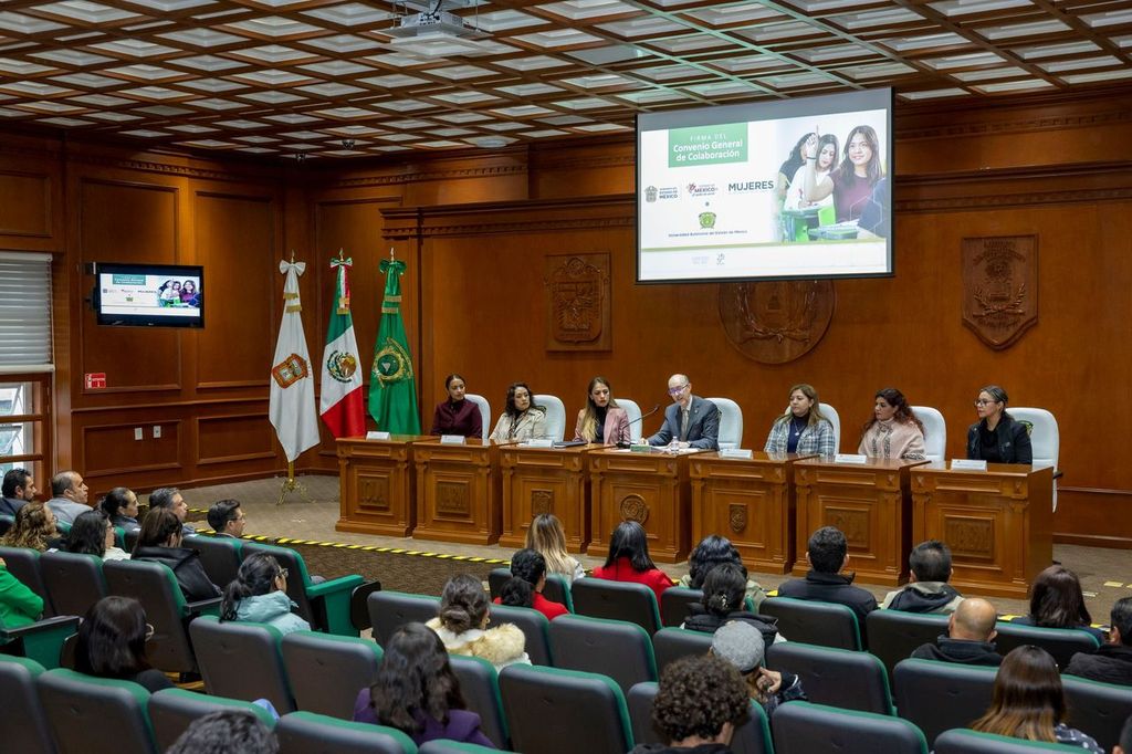 - La UAEMéx firmó un Convenio General de Colaboración con la Secretaría de las Mujeres del Gobierno del Estado de México; permitirá que alumnado, egresadas, egresados y personal administrativo participen en programas de docencia.
