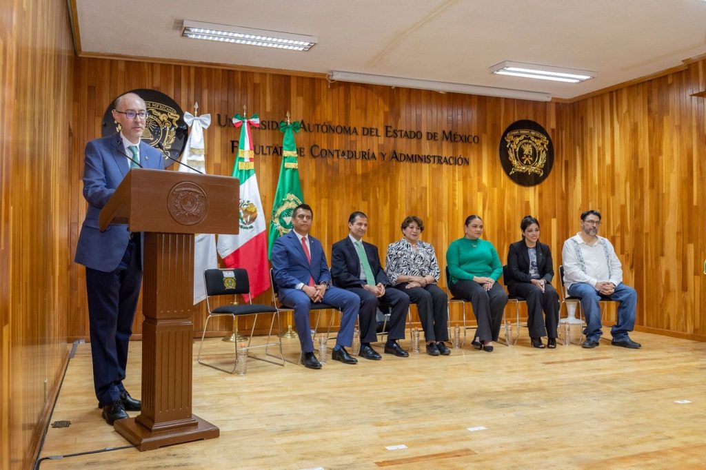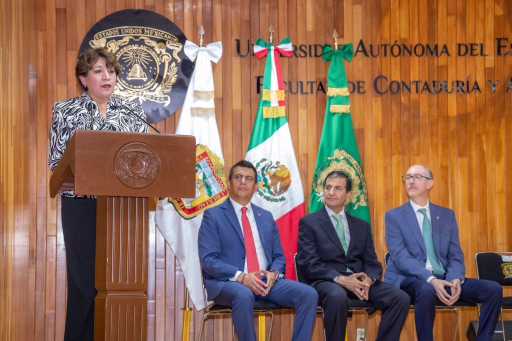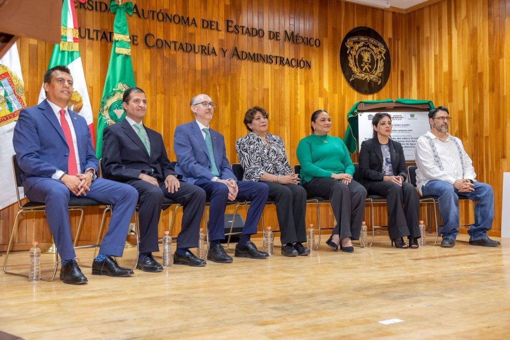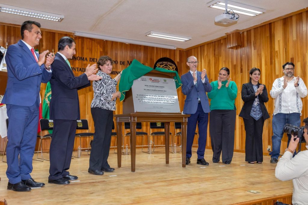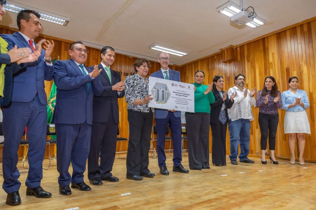 - La gobernadora del Estado de México, Delfina Gómez Álvarez, y el rector de la UAEMéx, Carlos Eduardo Barrera Díaz, entregaron cinco sistemas de captación de agua de lluvia en las facultades de Ciencias Políticas y Sociales, Contaduría y Administración, Economía, Humanidades e Ingeniería.